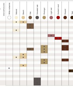 ODCIENIE: buk, meranti, merbau, movingui, teak, biała melamina, naturalny sosna, wenge, egzotyczna czerwień, dąb palony, dąb, orzech włoski, jasna czerwień
