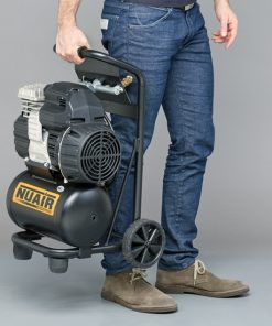 Kompresor bezolejowy NUAIR B4PP304NUA SIL AIR 244/10 PCM posiada scentralizowany panel kontrolny z podwójnymi manometrami, reduktorem ciśnienia i wylotem powietrza, a wszystkie elementy urządzenia zabezpieczone są stalową obudową. Dzięki wysoko ustawionej konstrukcji, nieruchomemu uchwytowi oraz kołom jest łatwy w przemieszczaniu w pozycji podniesionej, zapewniając stabilną i bezpieczną pracę.