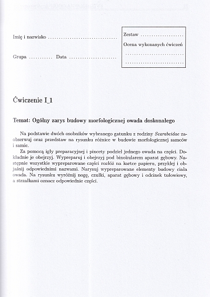 Zeszyt ćwiczeń z entomologii dla studentów Wydziału Leśnego